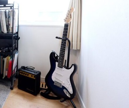ギターや管楽器は、壁にかけて収納するとインテリアにも映えます。