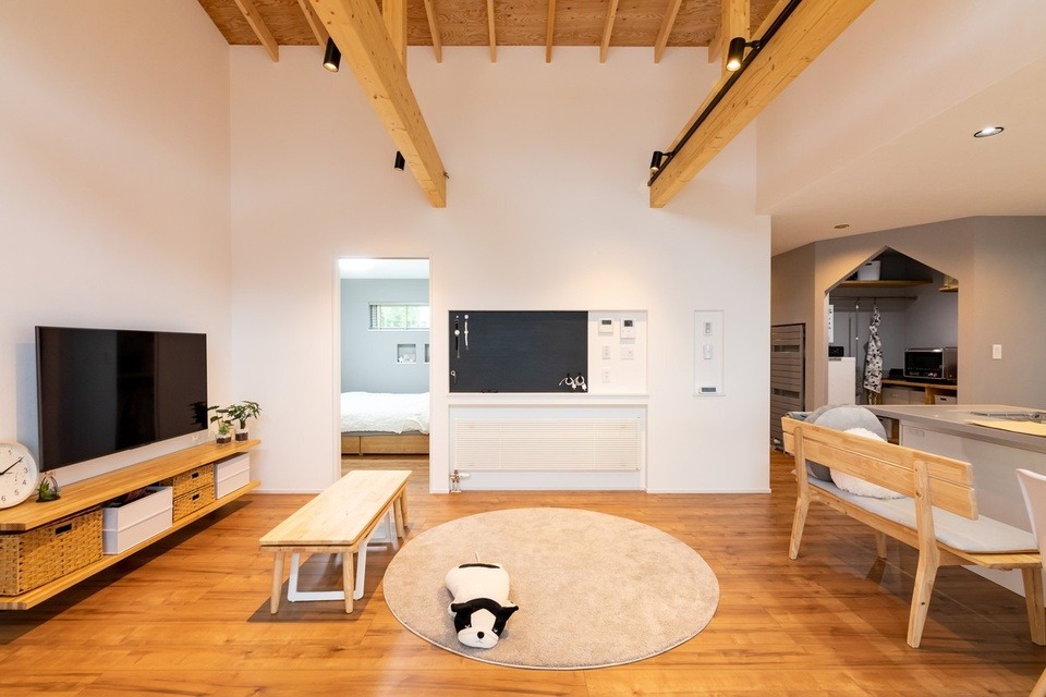リビング事例7|広いリビングに趣味部屋への動線。共働き夫婦の「楽」な暮らし