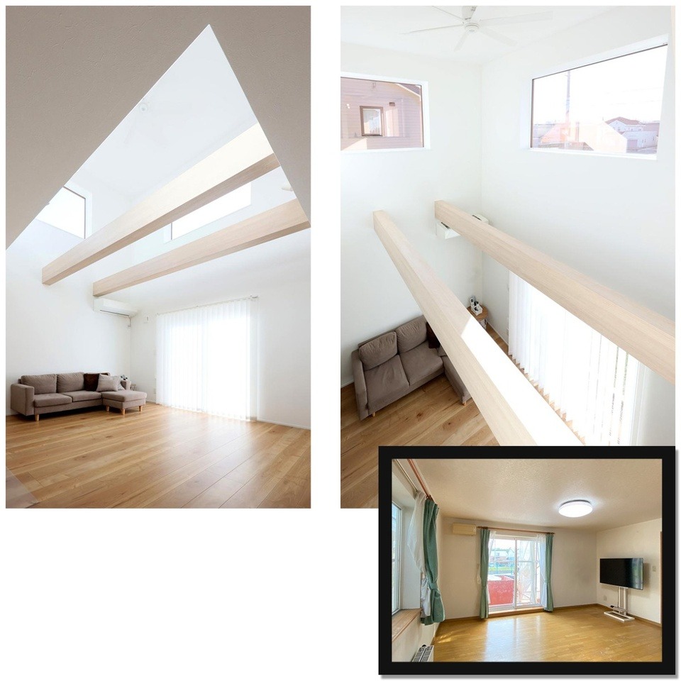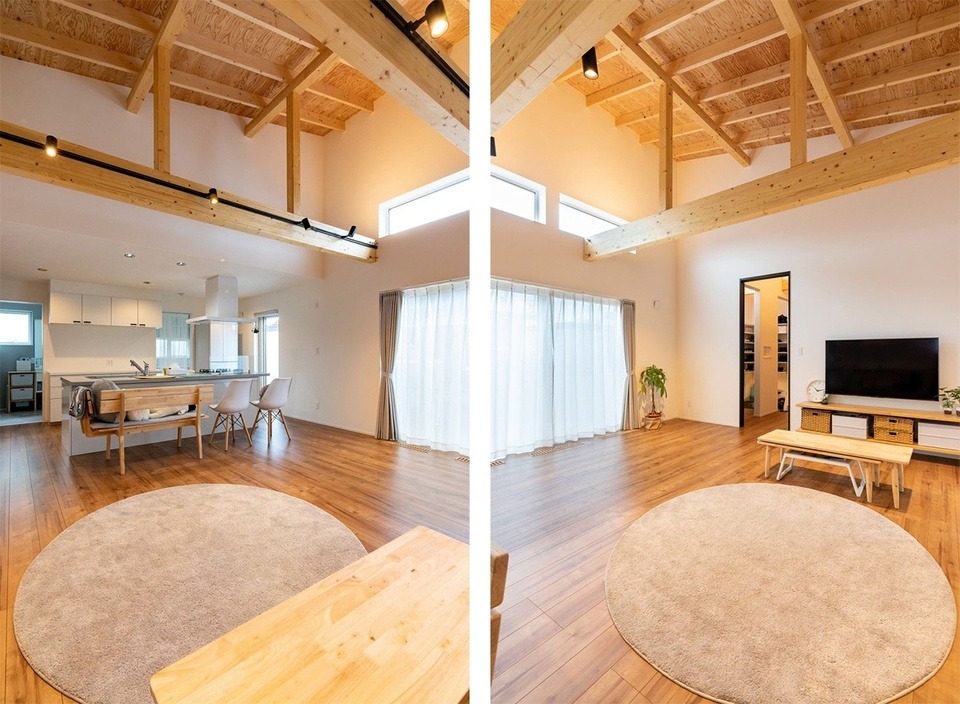 リビング事例1|天井を30cm高くして、陽当たりと開放感を両立(恵庭市・T様邸)