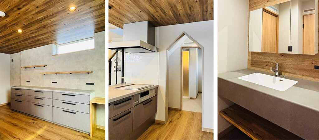 ちょっとした天井高の違いが、空間の印象を大きく左右します。「天井を高くしたい」という要望に対して、コストとのバランスを見ながら30cm上げるという具体的な提案ができるのは、自由設計ならではです。SHS外張断熱工法とパッシブ換気を採用し、性能面もしっかり確保しています。👉 この事例の詳細を見る