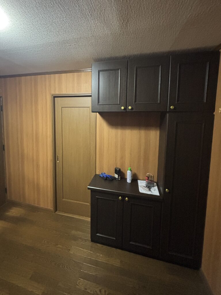 リフォーム前は壁が銘木合板仕上げでした。