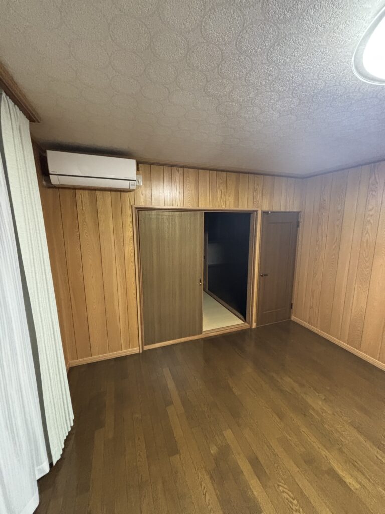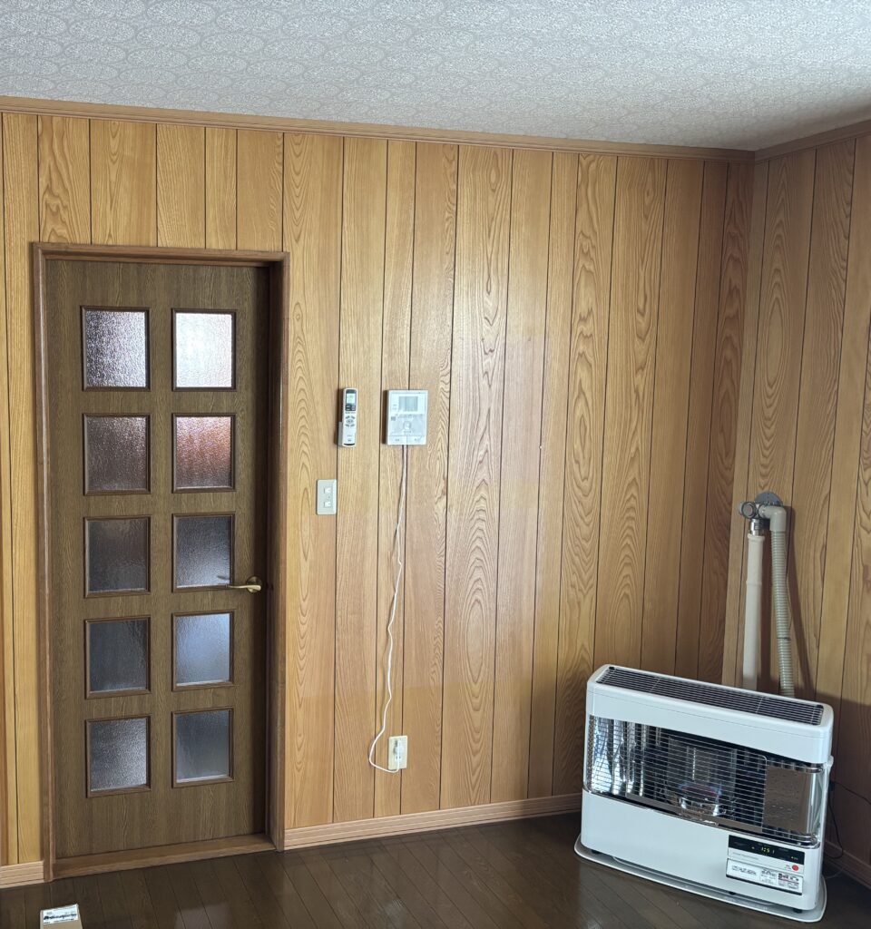 リフォーム前は壁が銘木合板仕上げでした。