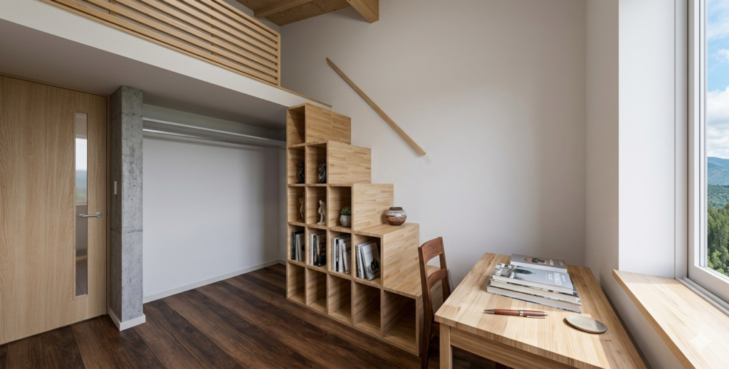 ◆階段付きロフト: リビングや子ども部屋に設置 。収納としてはもちろん、子どもたちの特別な遊び場に 。階段収納付きで利便性も抜群です 。
