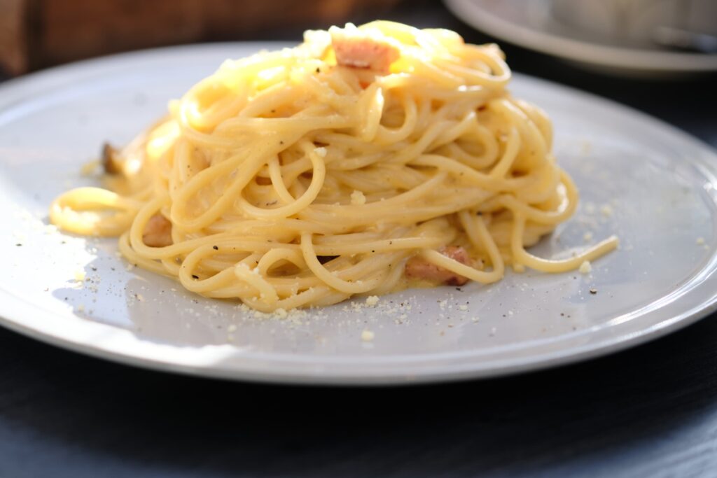 濃厚なチーズがとても美味しいこのお料理の名前は「女子ウケの良いカルボナーラ」